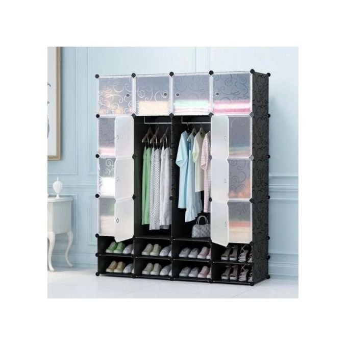 Plastic Frame Portable Wardrobe 4 Column Plastic Wardrobe – Black,White