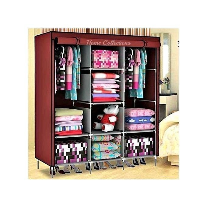 Home Fashion 3 Column Cloth & metallic frame Wardrobe ( Not Assembled) – Maroon