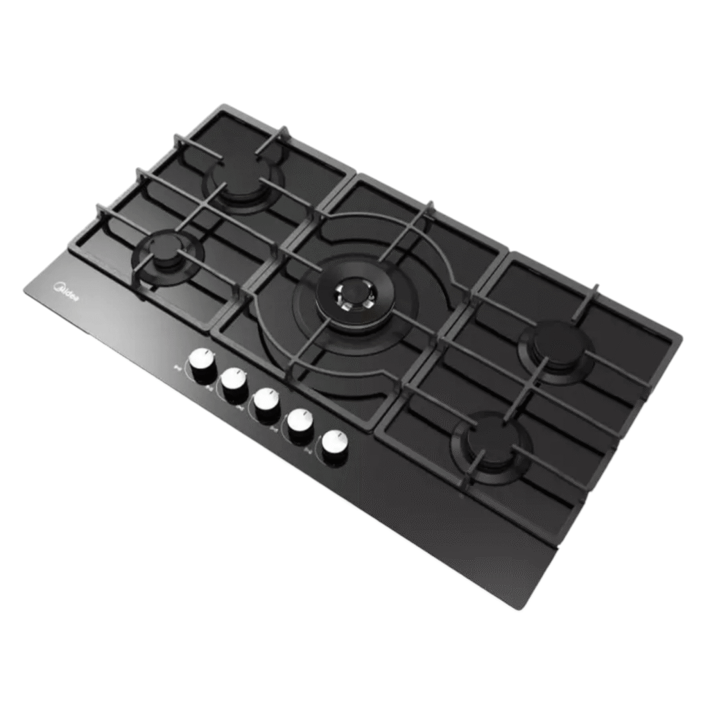 Midea Built-in Gas Hob, 90cm by 60cm, 5 Burners, Automatic Ignition, Black Cooktop