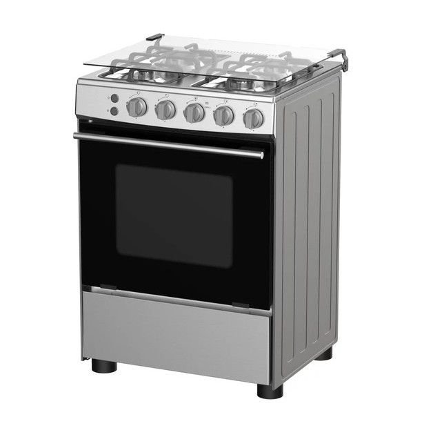 Blueflame D60406-I-L-R-F Full Gas Cooker, 60cm x 60cm – Silver, Black