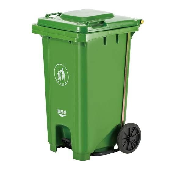 Medical waste plastic wastebin with wheels and Pedal green
