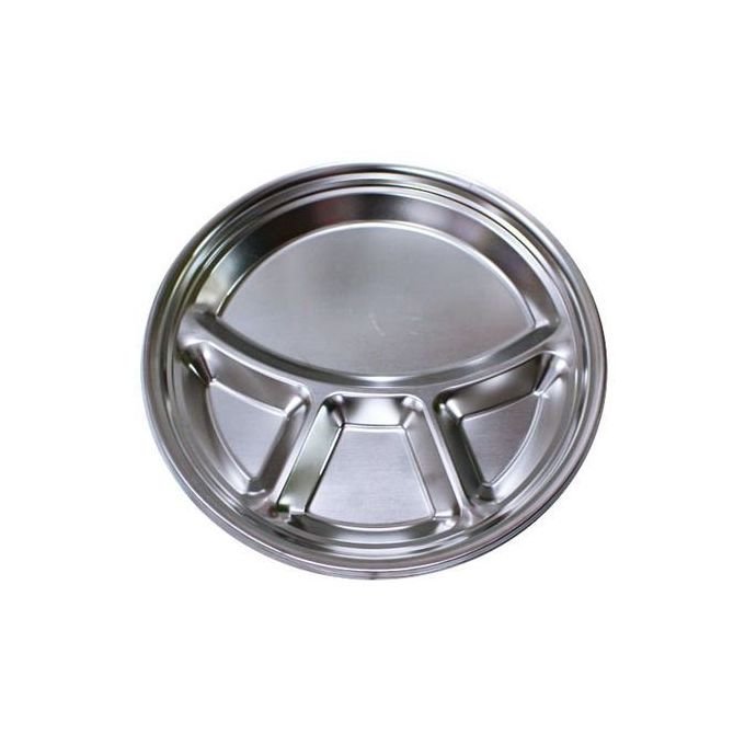These partition plates are made of high grade stainless steel which is completely harmless to food. they are quite strong and good for serving a variety of food. They are very useful during events and at home, especially when you want to serve a variety of dishes on one plate. The plates are sold in a set of 6 pieces are stainless, try them