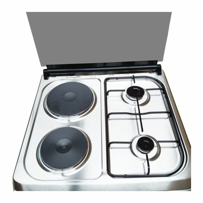 Two Gas + Two Electric Upright Oven, 60x60cm ie; the cooker has 2 gas use plates and 2 electric use cooking plates60 by 60 diametre big enough accomodate cooking of diferent cusines at the sametime and with a and an upright oven