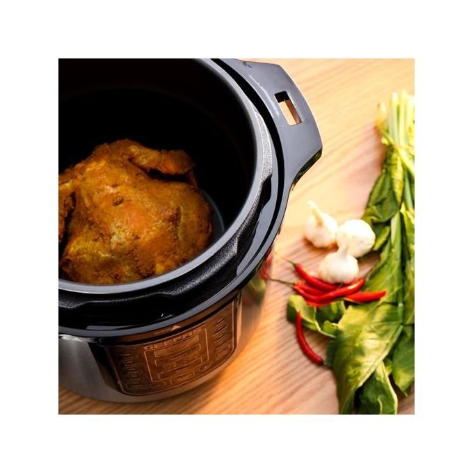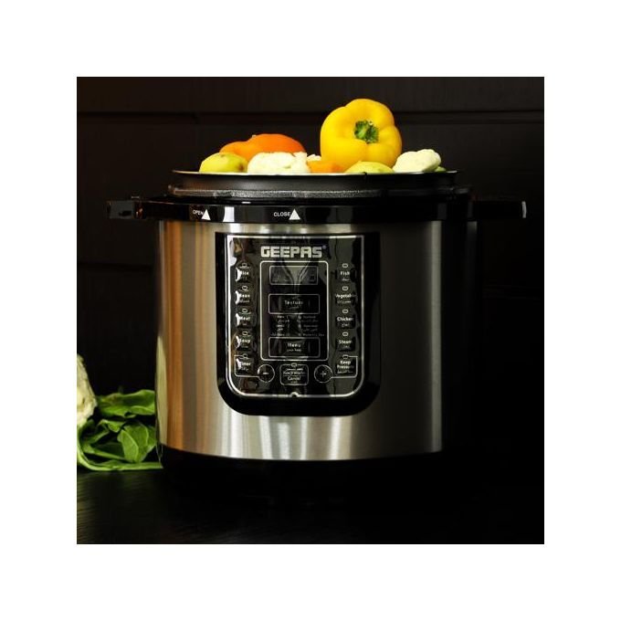 Make home cooking easier with this 8L Geepas digital cooker; cook delicious meals with very little hassle, just pop in your ingredients, set the time and heat and let the flavours intensify while you get on with your life, even use the time delay function to decide when you want the cooking to begin whether day or night. If you decide you want to watch your food bubble away we”ve included a lid so you can keep the goodness locked in. The 8L digital multi cooker is perfect for cooking meals for the whole family or entertaining guests, this practical cooker makes cooking effortless, select your desired setting with the 14 programmable with LED display and return later to a fully cooked meal with no monitoring required. The 14 different settings gives you total control over timing, if you are short for time you can use the hot setting but if you”re Happy to let it simmer all day you can use the low setting or whatever you choose to do. Smart Program timed cooking pre-sets let you “set it and forget it,” freeing you to do other things while the Duo cooks your dinner safely and quickly, with minimal mess and easy clean up. Quickly and easily create delicious one-pot meals, sides, snacks and desserts even cook and crisp a whole 2kg roast chicken in as little as 30 minutes. The pressure cooker that crisps. Quickly pressure cooks tender, juicy meals up to 70% faster than traditional cooking methods(Compared with slow-cooking, simmering or braising). Then choose from Air Crisp, Bake/Roast or Grill settings to give your perfectly cooked food a crispy finish. Enjoy roasted chicken breasts, golden chips, juicy steaks, fluffy frittatas and mac ”n” cheese with a crispy topping. Simply swap between the Pressure Lid and Crisping Lid for perfect results every time. Cook mains and sides at the same time – layer vegetables, rice and grains with meat, fish or proteins using the reversible rack for a delicious one-pot meal. Cook from frozen to have dinner ready quickly and keep Warm mode keeps food ready to eat for long hours after cooking.