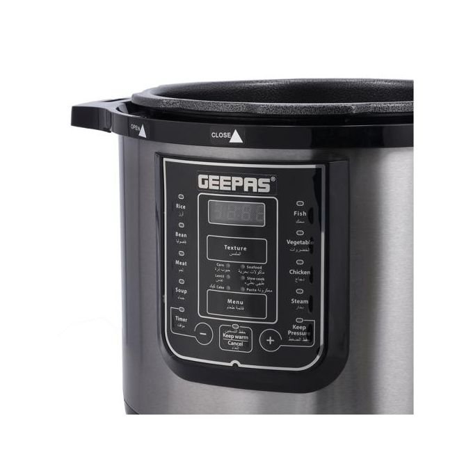 COMPACT LID, 8L CAPACITY – When pressure cooking, the super-safe lid can only be removed after all the pressure has been released. A locking lid, with sturdy carry handle, means this Geepas-Pot Express can easily be transported, for meals on the move.