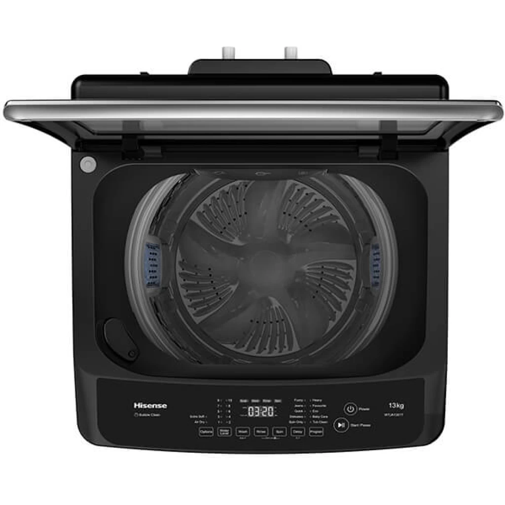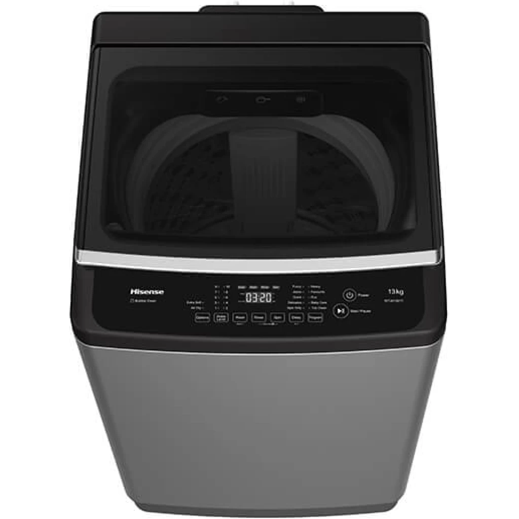 Hisense 13kg Top Load Washing Machine WTJA1302T; Bubble Clean, Smart Fuzzy, Double Magic Filter, 10 Washing Programs – Grey