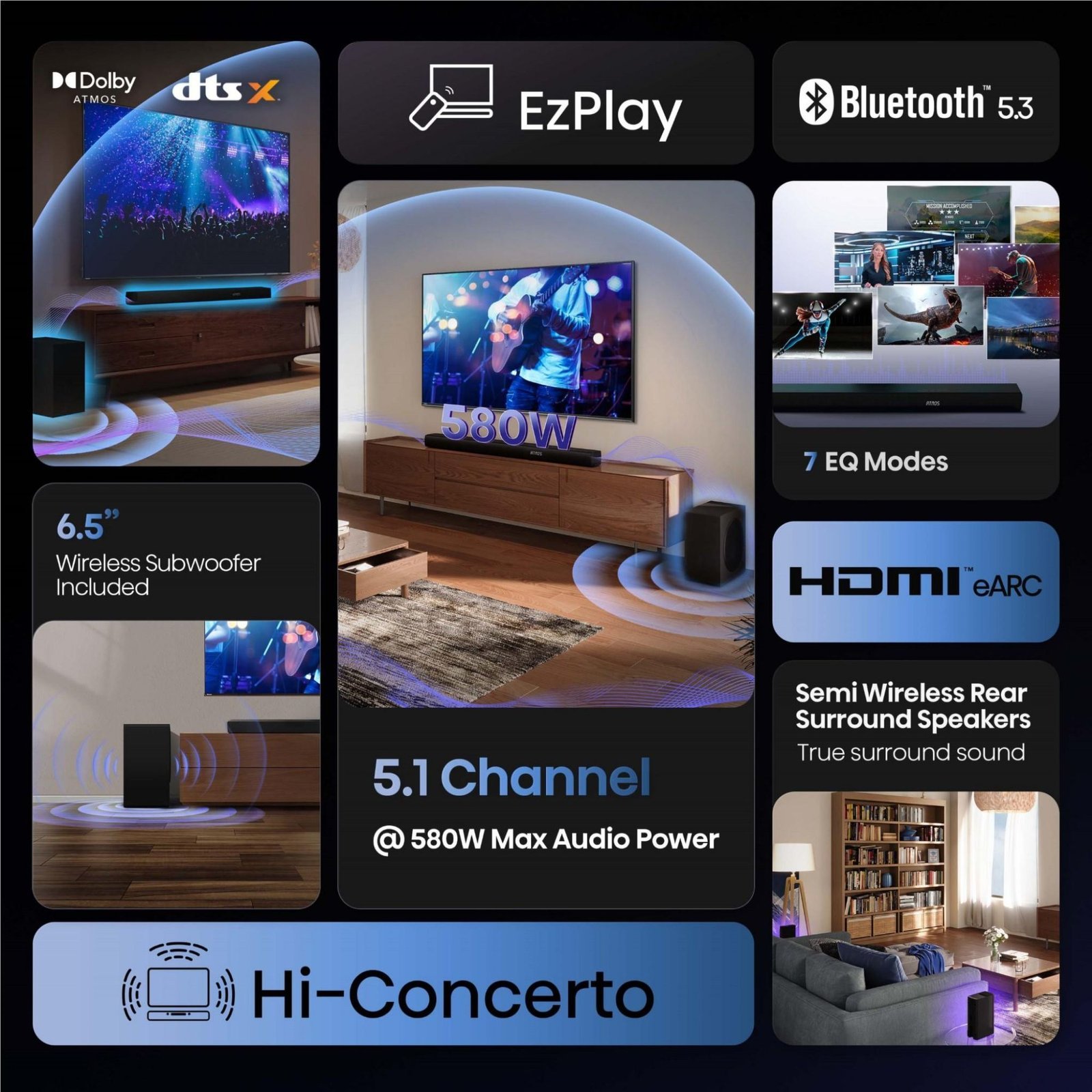 Immersive 580 W Power, 5.1‑Ch Sound & Dolby Atmos