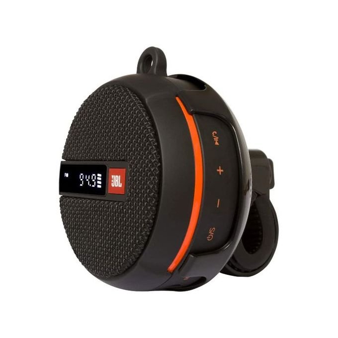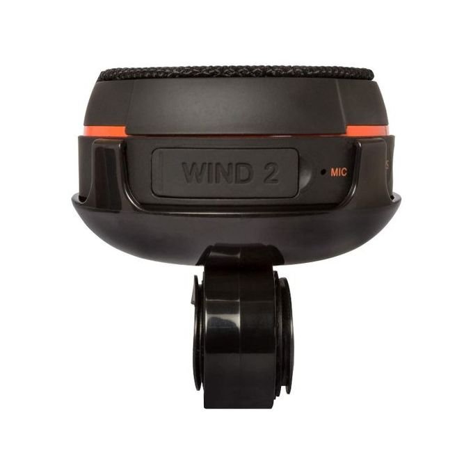 Wireless and To-Go Speaker. Easy connection with your electronic devices wirelessly. Hand free calling on the go with built in microphone. Carabiner and bicycle or motorcycle handlebar mounting and bracket supplied for dual outdoor usage. Built in FM Radio (20 stations), microSD card slot (up to 64GB) for MP3 playback and Aux-In for cable audio connectivity, JBL Wind is IPX7 rated waterproof with built in Lithium-ion battery that can last up to 10 hours of music playback. Wind 2 is also equipped with an informative LCD display that displays all the necessary information.