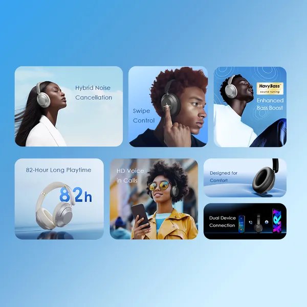 Up to 82-Hour Playtime – Get 82 hours of battery life (ANC off) or 53 hours (ANC on) for non-stop entertainment all week long.