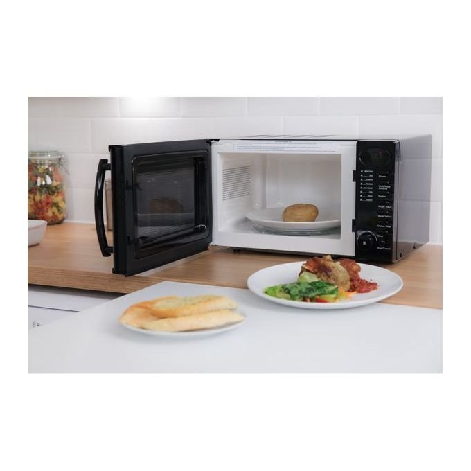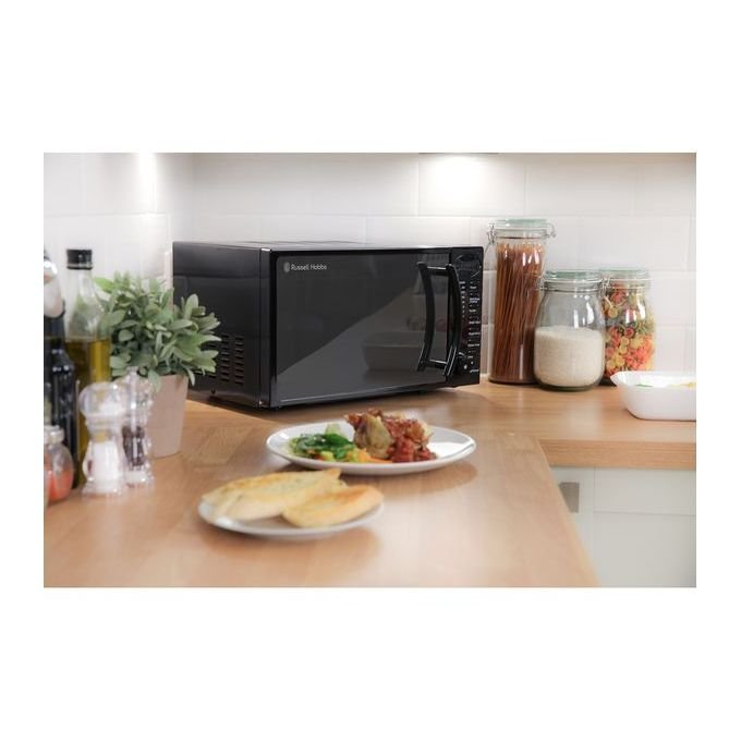The Russell Hobbs microwave has a sleek and stylish design, boasting an attractive mirror door finish. This attractive appliance is simple and easy to use with its 700 watts of microwave power, providing you quick and convenient cooking in your home.The RHM1714BC from Russell Hobbs is a 17litre cavity capacity microwave, comfortably fitting a standard size of dinner plate. It comes with a removable and dishwasher safe glass turn-table for easy cleaning.Pre-programmed auto cook menus, such as pizza (reheat), fish and popcorn, allow you to cook all your favourite foods at the push of a button. What’s more, there is automatic defrost settings meaning all you have to do is input the weight of the food, and the microwave selects the ideal defrost time, saving you time and effort.Moreover 5 microwave power levels enable tailoring of your cooking experience.Additional features include a handy digital clock and count-down timer and for added peace of mind the RHM1714BC comes with a child safety lock option. Once the child lock is on, it locks the button control so the microwave cannot be activated.