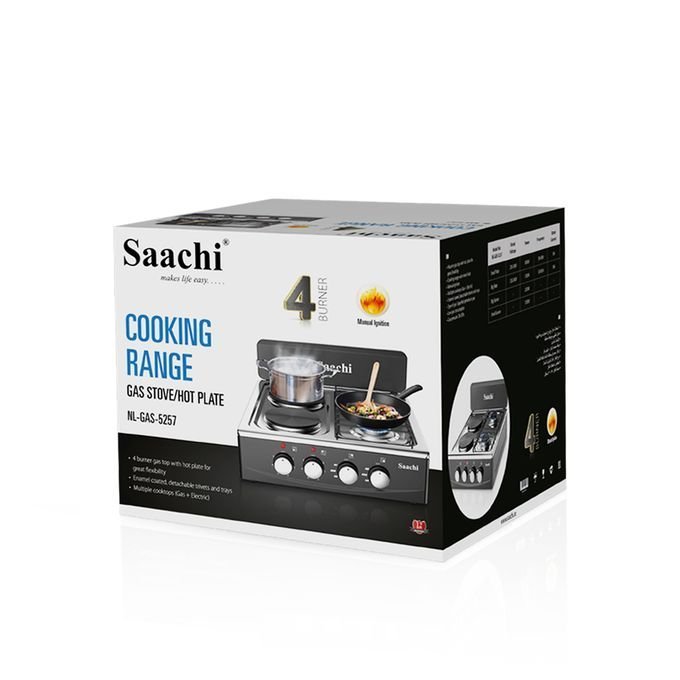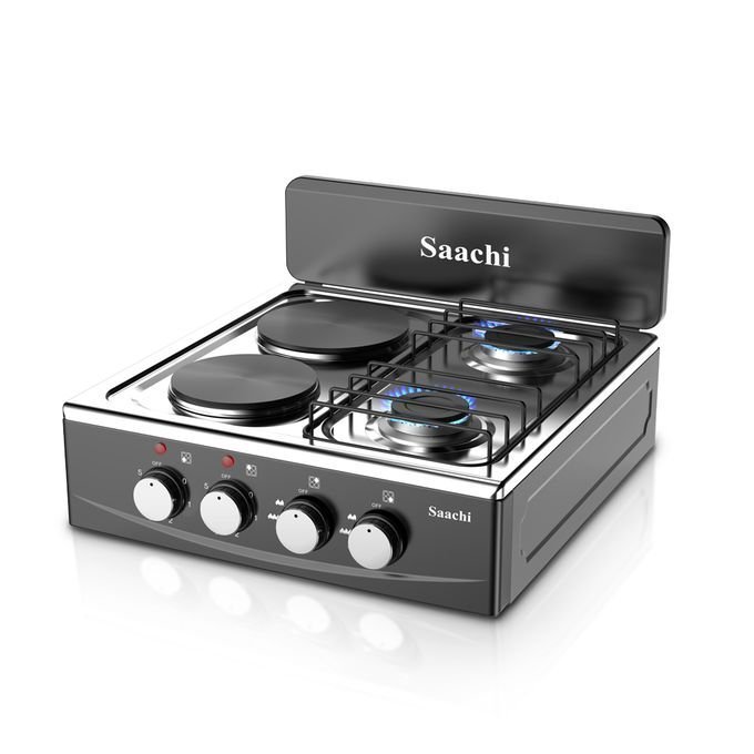Saachi 2 Gas + 2 Electric Hot Plates Stainless Steel Table Top – Black