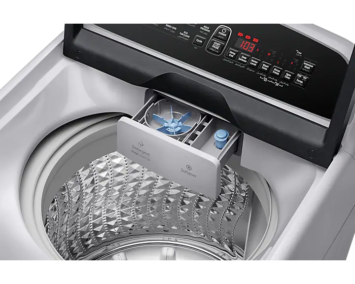 Wash without worrying about residual detergent. A Magic Dispenser creates a powerful water vortex. It dissolves liquid and powder detergent and disperses it evenly before a wash cycle starts. So it keeps the detergent box clean and minimizes the risk of any residue being left on your clothes*.