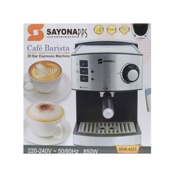 Sayona Espresso/Cappuccino/Latte Coffee Maker – Silver/Black