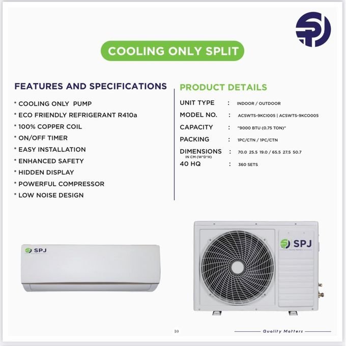 SPJ 9000 BTU Wall Split Air Conditioner R410a – White